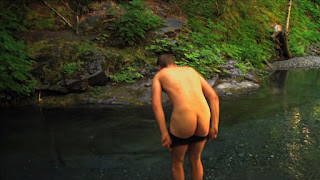 Today's horror hunk is Bryce Johnson. Though he's most known for his television work in series like Popular and Pretty Little Liars, Bryce's film resume includes the found footage horror film, Willow Creek, which succeeded in getting the actor out of his clothes. Written & directed by veteran comedian Bobcat Goldthwait, the film follows Bryce's character, Jim, and his girlfriend as they research the Bigfoot legend, leading them to Willow Creek. Bryce takes a dip in the water, providing some great views of his butt and some distant flashes of frontal nudity while he's in the water.