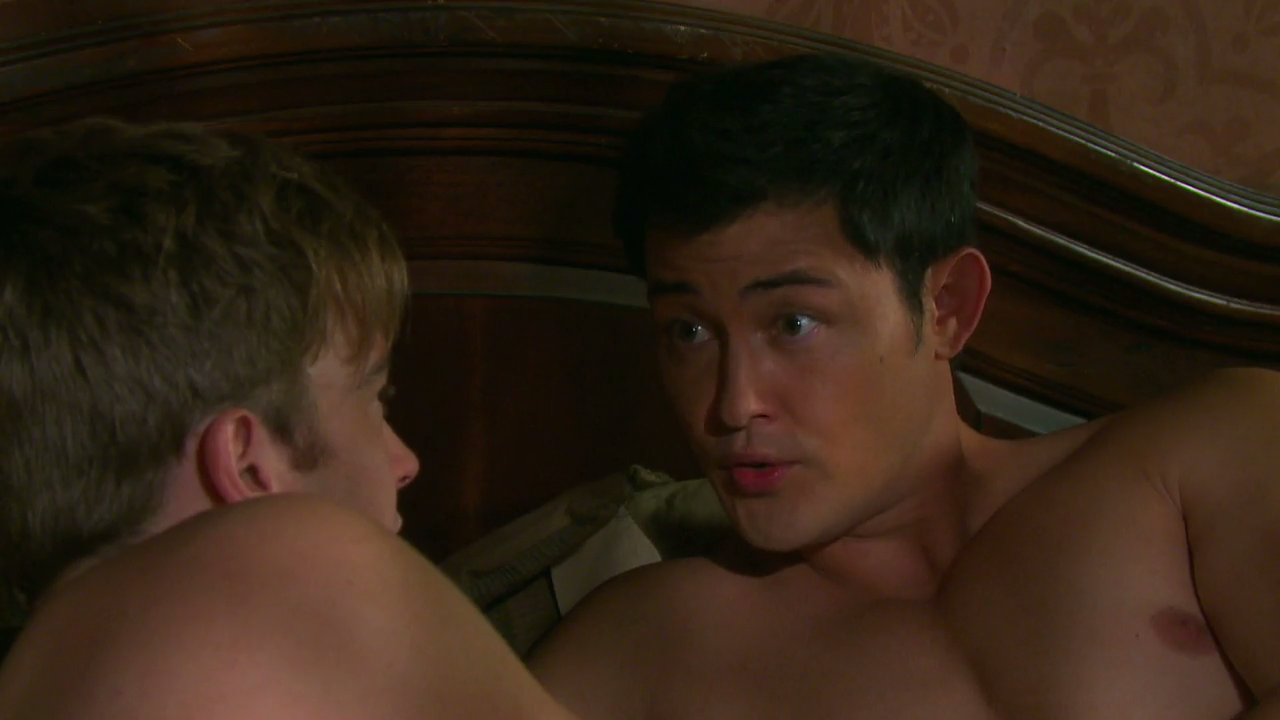 Days of Our Lives got Chandler Massey stripped down to a towel this week. The May 8th episode found Paul (played by Christopher Sean) paying a visit to his neighbor Will (played by Chandler). Will answers the door clad only in a towel and things get instantly steamy when he invites Paul inside. The towel comes off and the two head to bed together. Both actors are shirtless for the two bed scenes that follow. Their shared ex, Sonny (played by Freddie Smith), later lashed out at Paul for drawing Leo (played by Greg Rikaart) into his latest investigation with questions about his potential connection to the villain Vivian. This leads Sonny to dismiss his efforts to keep Leo at arms length because of their working relationship and the two share a kiss.