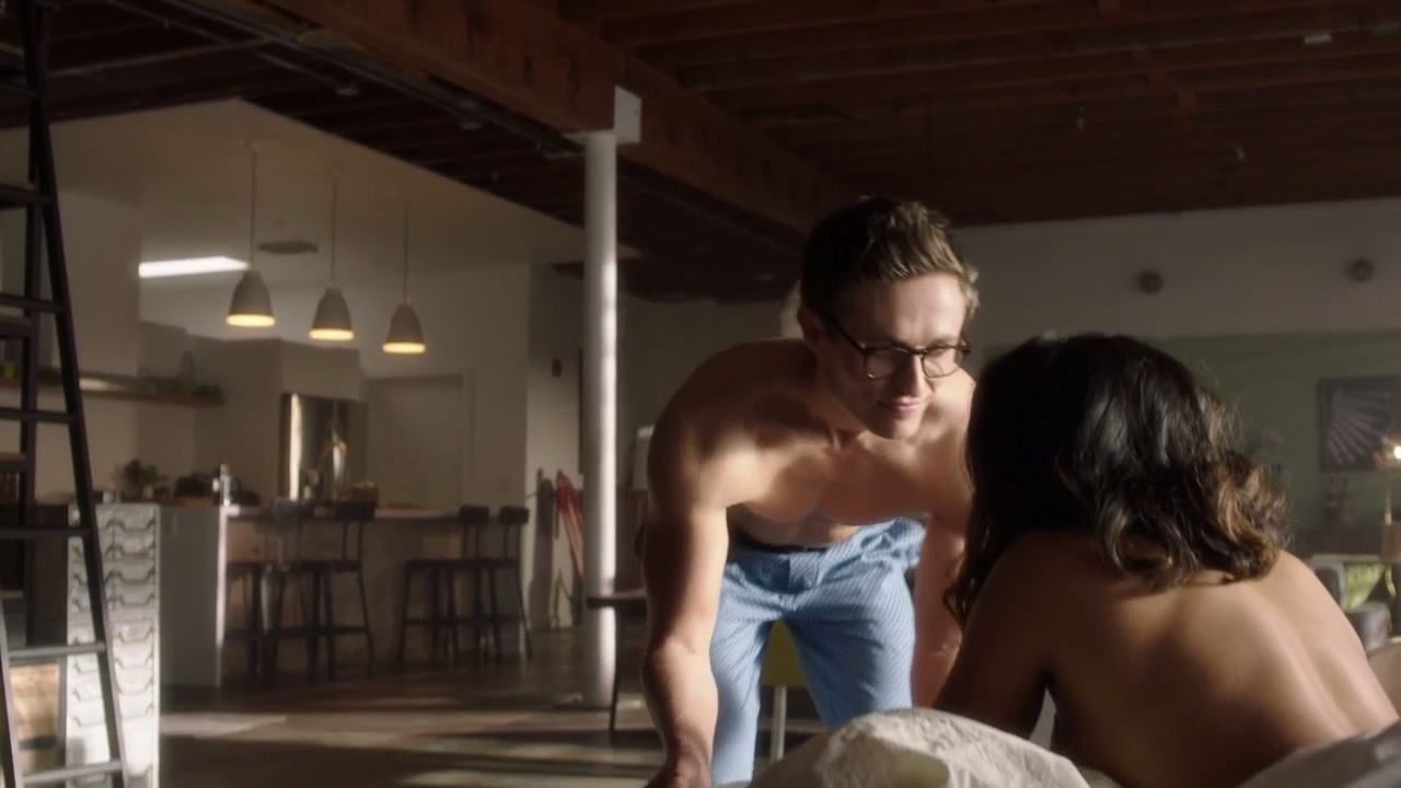 The Pretty Little Liars spinoff The Perfectionists premiered this week on Freeform and the first episode featured lots of skin from the male cast. Recurring actor Chris Mason ditched his shirt in four different scenes, as his character Nolan was the center of all the drama surrounding a trio of college friends whose overachieving status becomes threatened by Nolan, the man that connects them all. Nolan was shown to have blackmail-filled affairs with all three, including Dylan (played by Eli Brown). Eli was shirtless with him for their brief sexual encounter shown in flashback. Dylan harbors his cheating secret from his boyfriend Andrew (played by Evan Bittencourt). Cast member Graeme Thomas King spent the majority of his screentime shirtless as his character, Jeremy, was shown to be having his own sexual relationship with one of the other perfectionists, Caitlin.