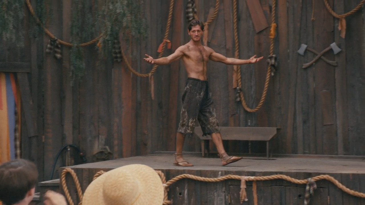 The new Lifetime series American Princess centers on Amanda, a socialite who falls apart when she finds her fiancé cheating on her on their wedding day. She retreats to a Renaissance fair, befriending the quirky performers she finds there. Episode 1 got leading man Lucas Neff shirtless for the majority of his screentime, as Amanda crosses paths with his character David at the fair, and finds an instant connection. His fellow "mud men" performers played by Matt Peters and Lucas Hazlett are also shirtless in the first episode. There's also rear nudity, courtesy of Max Ehrich, who plays Amanda's fiancé Brett.