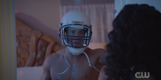 Last night's new episode of the CW teen drama All American featured some skin from cast member Michael Evans Behling & recurring actor Hunter Clowdus thanks to a big party. Episode 5 of the second season found Hunter's character JJ helping to throw a big birthday bash for twins Olivia and Jordan (played by Michael). The party sounds gets out of control. Olivia goes looking for her brother only to find JJ in his undies and a football helmet. Meanwhile, Jordan is discovered getting hot and heavy with a classmate without his shirt.