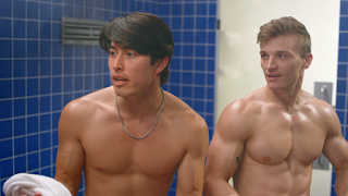 Steam Room Stories: The Movie is a comedy based on the long-running Youtube series from writer/director J.C. Calciano (The 10 Year Plan, eCupid, Is It Just Me?). The film centers on a group of steam room buddies (played by Chris Boudreaux, Jacob Buckenmyer, Forrest Hoffman, Isaiah Lucas & Paris Dylan) who set out to raise money to save the gym after learning of the owner's overdue tax bill. This puts them into conflict with cosmetics maven Sally Fay who plans to tap into a fountain of youth that runs through the waters of the steam room. She sends in her assistant Neil (played by Eric D'Agostino) to infiltrate the group and sabotage their efforts, but when he falls for Wade (played by Jacob) his loyalties begin to shift. Given the primary setting of the steam room, the film is full of male skin as the guys are clad in towels for many scenes. There's also some rear nudity from Chris, Forrest & Isaiah when their towels come off for some steam room fun. Dan Elwood is also scantily-clad for his role as Willie Mammoth, a porn star that Sally sends into a wet undies contest to defeat the boys.