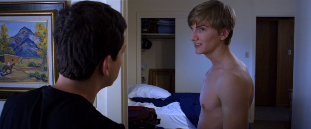 The romantic comedy Hold Your Peace tells the story of Aiden (played by Chad Ford), who finds himself feeling awkward when he's asked to be the best man at his ex-boyfriend Max's commitment ceremony. Not wanting to appear alone, he enlists young Lance, played by Scott Higgins (The Tribe of Misfits) to be his date for the event and comedy ensues as feelings turn out to be more complex than any of the attendees realize. Scott & Chad were both shirtless, along with their co-star Tyler Brockington who played Max, and Blair Dickens who played Max's partner Forrest.