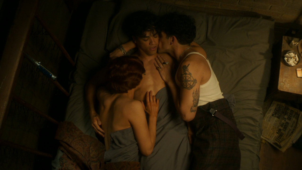 Episode 5 of Penny Dreadful: City of Angels featured the first nude scene for Johnathan Nieves on the series. His character, Mateo, brother of main character Tiago (played by Daniel Zovatto), got even more deeply involved with gang leader, and demon in disguise, Rio. She got him naked, removing his bloody clothes with the promise of purging him of his meaningless past to become powerful after committing murder. This led the two to hit the sheets. They were later interrupted by fellow gang member Fly Rico (played by Sebastian Chacon). Mateo assumed Rico would be upset that he slept with Rico's adopted sister, but Rico joined them in the bed, planting a kiss of his own on Mateo. The scene ended with the three all enjoying each other. Meanwhile, Mateo's brother Tiago got his own shirt removed as part of a love scene. Daniel was shirtless for two scenes.