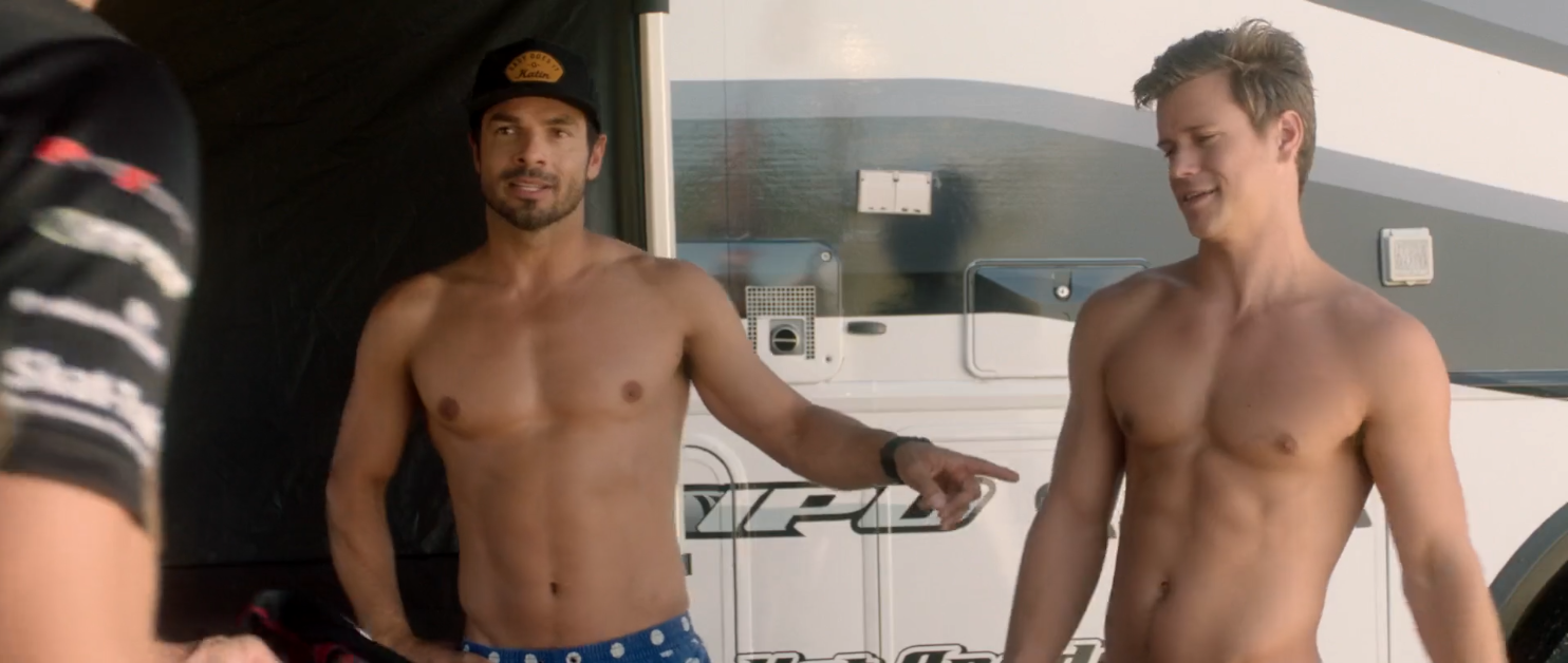 also showed off his chest, playing Billy's jet skiing rival Richard. There's
