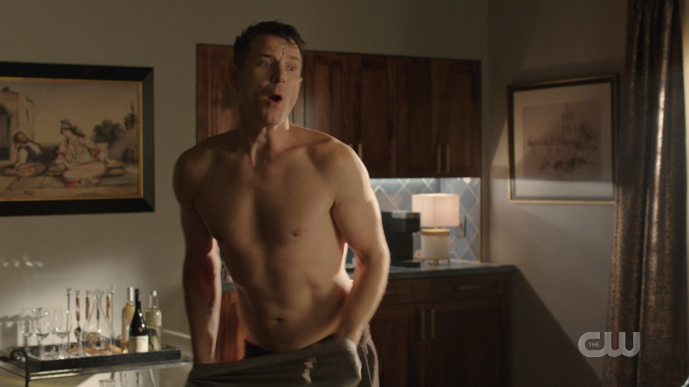 The CW drama Dynasty recently returned for its fourth season. The first few episodes have been lacking in male skin but the series made up for it with Episode 3 of the new season. Cast member Adam Huber spent several scenes shirtless as his character Liam was convinced by his wife Fallon to relax and enjoy some specially-arranged pampering poolside, though their quiet relaxation soon experienced several interrupts, ultimately leading Liam to abandon the whole thing. He was clad in swim shorts for the occasion. Recurring actor Wil Traval got another shirtless scene as his character got dressed in the bedroom. Cast members Rafael de la Fuente & Grant Show both showed a bit of skin in open shirts during the episode.