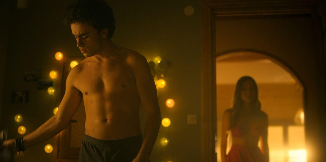 The fourth and final Élite short story centered on the relationship between Carla and Samuel (played by Itzan Escamilla), as Samuel made a grand gesture, going to the airport with hopes of convincing Carla not to move away. His efforts appeared to work as she went home with him. Their clothes were soon left behind and Itzan was shirtless for a sex scene. He remained shirtless for several more scenes. In the end, his efforts did not change her mind, as both realized they would never truly work as a couple.