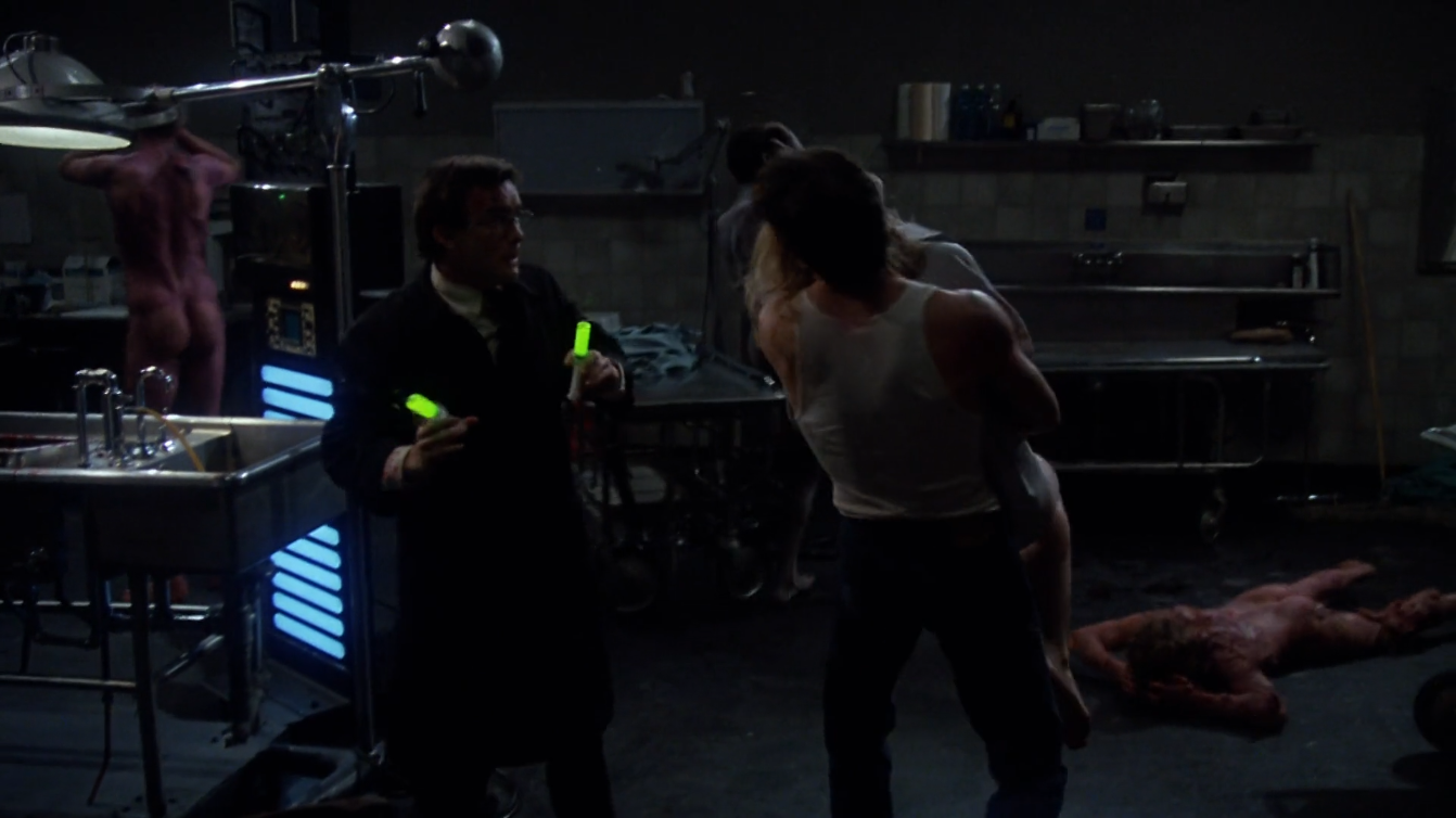 The sci-fi horror classic Re-Animator tells the twisted tale of medical student Dan (played by Bruce Abbott) and his girlfriend Megan, who have their quiet lives torn apart after the arrival of a new med student, Herbert, whose odd experiments lead to extreme horror. When Herbert unveils a chemical combination that can re-animate dead tissue, the trio are dropped into the middle of a horrific scenario in the morgue after the concoction ends up in the wrong hands. Bruce appeared shirtless in the film. There was also rear and frontal nudity from a group of actors all playing re-animated corpses out for blood. Peter Kent, Mike Filloon, Robert Pitzele, Lawrence Lowe & Robert Holcomb all got naked for their roles.